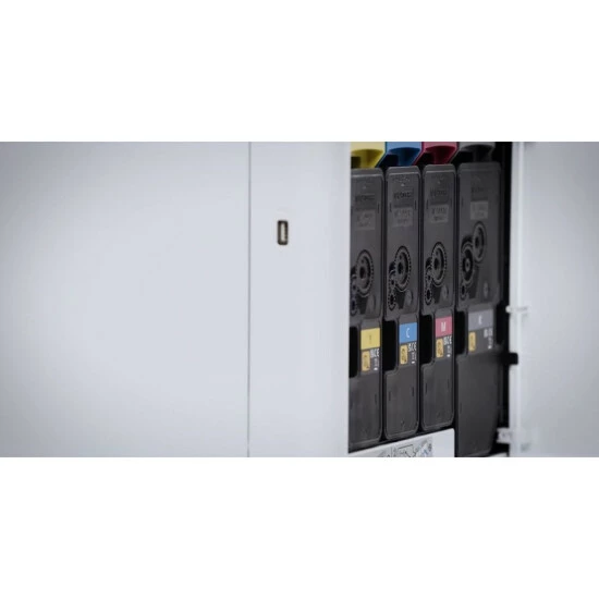 Funktionsvielfalt auf kleinem Raum: Der ECOSYS MA2100cwfx ist ein leistungsfähiges Farblaser-Multifunktionssystem mit einer Druckeinheit für bis zu 21 Seiten pro Minute. Dieses System erstellt nicht nur professionelle Farbausdrucke mit einer Auflösung von bis zu 1200 dpi, sondern verfügt außerdem über eine Faxeinheit, eine Kopierfunktion und einen Scanner mit Einzug für bis zu 50 Blatt. Dabei lässt sich der MA2100cwfx per LAN oder WLAN vernetzen, verfügt über vielfältige Sicherheitsfunktionen und eine Papierkassette mit bis zu 250 Blatt Volumen. Der ECOSYS MA2100cfx wird damit schnell zum starken und effizienten Partner im Homeoffice und in kleinen Büros.