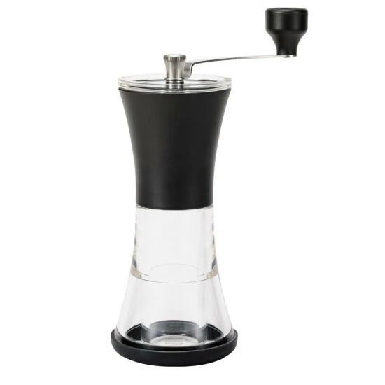 “Schlanke keramische Kaffeemühle.” Diese Mühle hat einen Acryl-Basisbehälter mit einer Kapazität für 30g gemahlenen Kaffee. Die schlanke Ausführung ist ideal zu halten und einfach im Gebrauch. Die Kaffeemühle hat einen fortschrittlichen keramischen Mahlmechanismus, der nie korrodieren wird, liefert frische Resultate und haltbare Leistung. Mit der Wahlvorrichtung kann nach Ihren Wünschen von fein bis grob eingestellt werden. Die rutschfeste Silikonbasis sorgt für ein stabiles Schleifen. Eine zweiteilige Abdeckung für einfaches Füllen. Keine Notwendigkeit, den Griff zu entfernen. Der keramische Schleifmechanismus und andere Edelstahlteile sind völlig waschbar. Die Mühle ist nur für getrocknete Kaffeebohnen. Verwenden Sie keine Haushalt-Bleichmittel. Nicht in eine Spülmaschine geben.