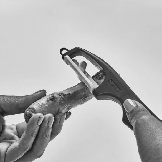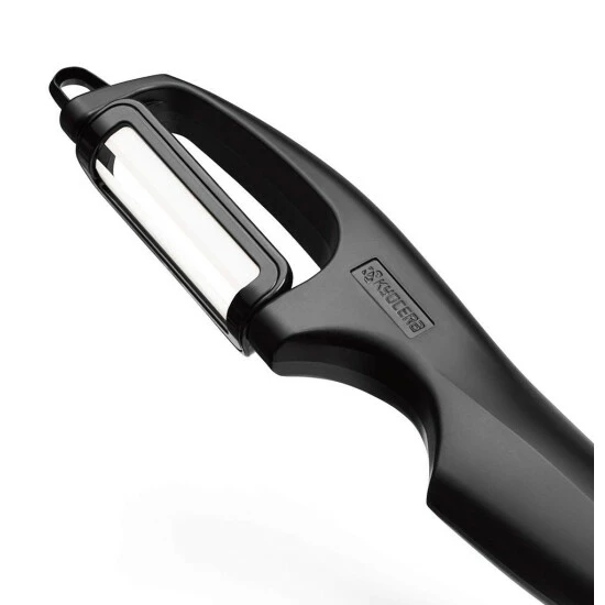 Dieser doppelseitige Sparschäler mit doppelseitiger Keramikklinge eignet sich optimal zum Schneiden von länglicher Gemüse, wie Spargel und Möhren. Das Gemüse lässt sich mit diesem japanischen Schäler doppelt so schnell schneiden. “Scharfe Hilfe” Lebensmittel lassen sich schnell und leicht mit den praktischen Küchenhelfern von Kyocera zubereiten. Sie sind die ideale Unterstützung beim Schälen, Reiben und Hobeln und aus keiner modernen Küche mehr wegzudenken.