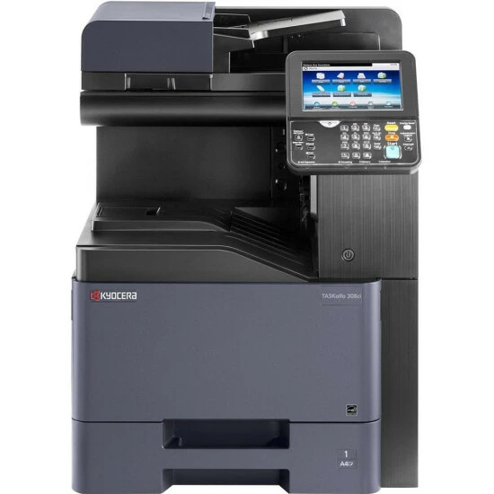Die TASKalfa 308ci von Kyocera Document Solutions liefert exzellente Druckergebnisse und ermöglicht professionelles Finishing. Alle Funktionen, die Sie von einem modernen Multifunktionssystem erwarten, sind über den intuitiven Touchscreen einfach zu bedienen. Durch die langlebigen, umweltschonenden Komponenten und eine hohe Papierkapazität, die sich mit zusätzlichen Papierkassetten auf bis zu 3.100 Blatt erhöhen lässt, bietet das System große Zuverlässigkeit und ermöglicht unterbrechungsfreies Arbeiten. Mit einem optionalen, 300 Blatt fassenden internen Finisher lassen sich zudem bis zu 50 Blatt an 3 Positionen heften.